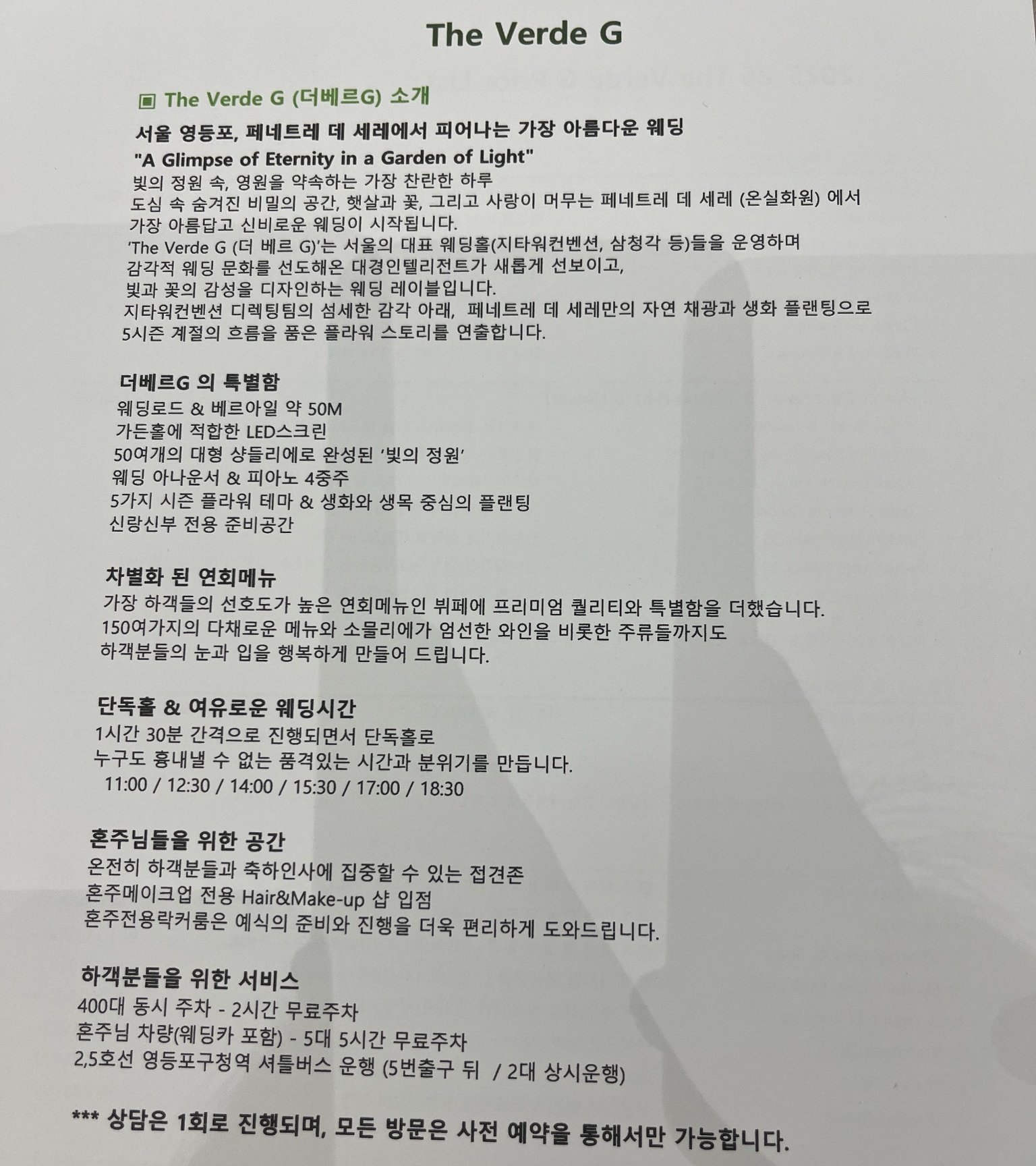 - 1시간 30분 간격의 단독 웨딩 진행이라 동시 예식이 아니라는 점